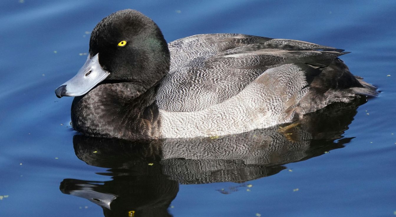Lors de l’observation, certains comportements facilitent l’identification du Fuligule milouinan. Ses plongées régulières pour chercher de la nourriture, sa nage rapide en surface et ses regroupements sociaux sont caractéristiques. Le plumage contrasté des mâles adultes, avec tête sombre et ventre blanc, permet de les distinguer facilement des autres canards plongeurs, tandis que les femelles et les jeunes se repèrent grâce à leur comportement de groupe et leurs mouvements sous l’eau.